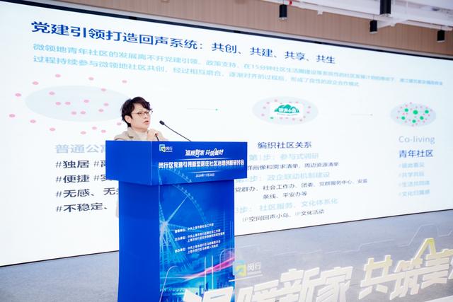 在现场,闵行区马桥镇党委、团区委、微领地集团分别作为街镇、区级职能部门和项目运营方代表,介绍了在各自领域对党建引领新型居住社区治理的探索和思考。 新型居住社区住户代表华润有巢居民刘婷婷,从住户个人的视角传达了对入住 “新家”一年来的感悟和心声。